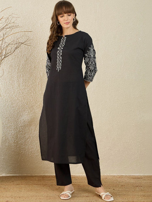 Dhiyona IE Women Ethnic Motifs Embroidered Regular Thread Work Pure Cotton Kurta with Trousers