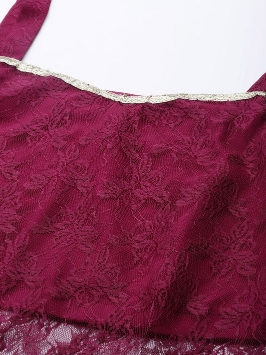 Dhiyona VA Women's Magenta Floral Lace Kurta with Sharara