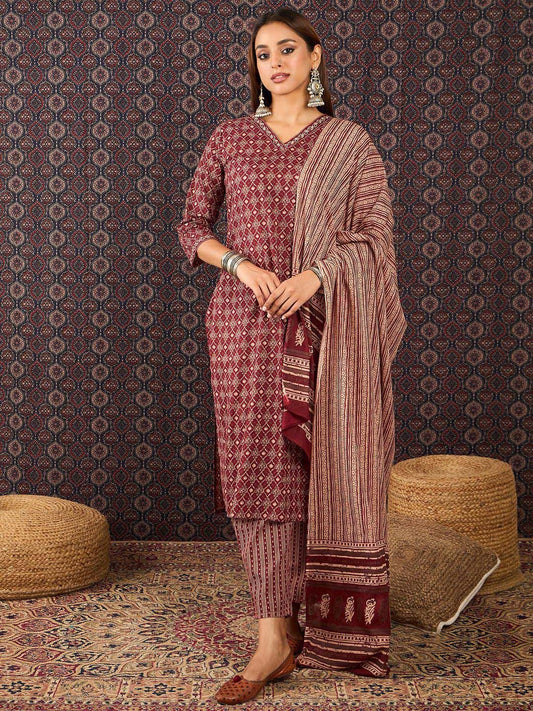 Dhiyona IE Ethnic Motifs Printed Kurta with Trousers & Dupatta