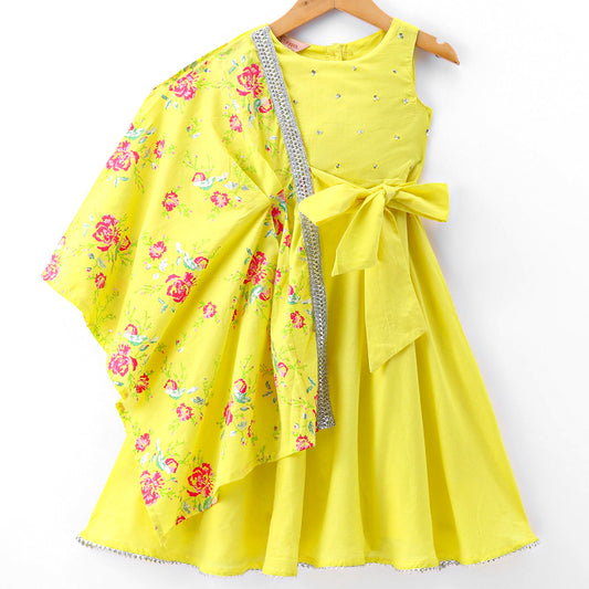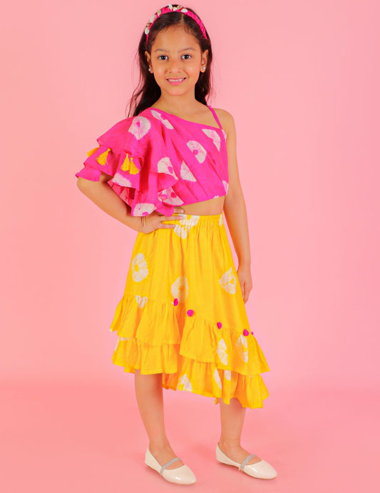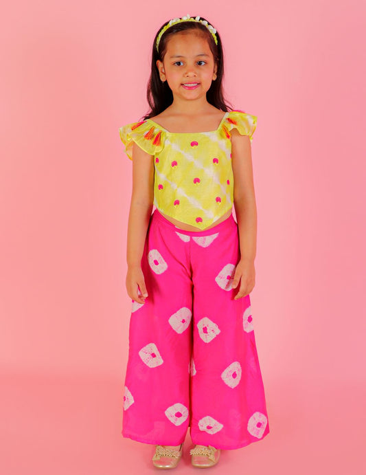 Genda Phool Mustard Crop Top and Dhoti Set For Girls