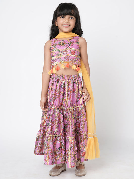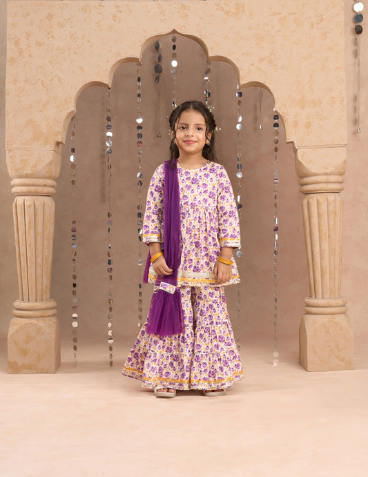 Jaipur Girls Lavender Cotton Kurta with Sharara with Dupata Ethnic Set