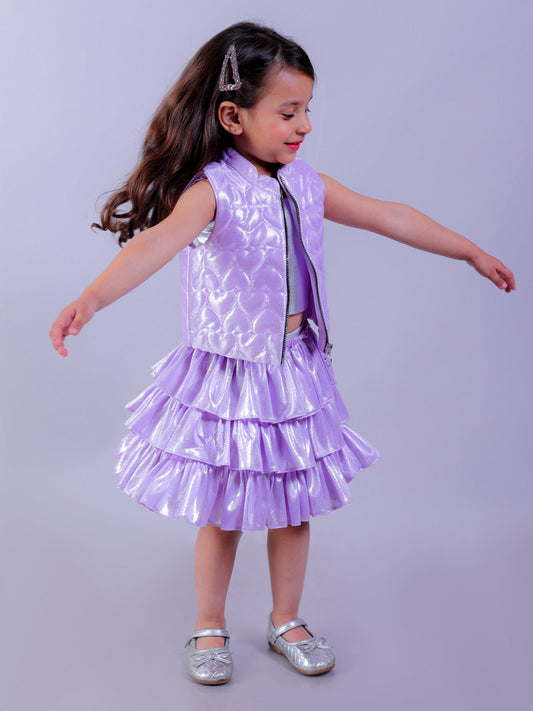 Glam Up Party Lavender Shimmer Jacket For Girls
