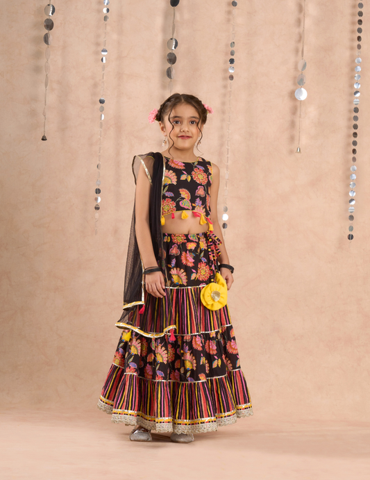 Jaipur Girls Black Cotton Lehanga and Choli with Dupata Ethnic Set