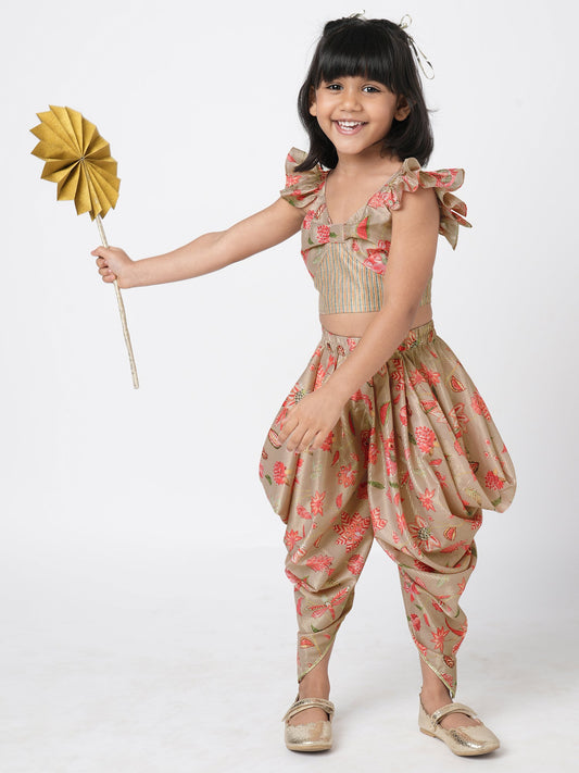 Golden Weaves Beige Crop Top with Dhoti Girls Co-ordinate set