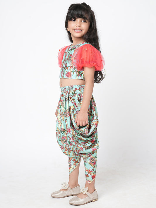 Golden Weaves Blue Crop Top with Dhoti Girls Co-ordinate set