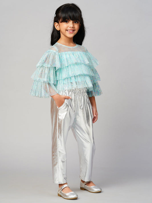 Glam Up Girls Shimmer Blue Party Top with Pant set for Girls