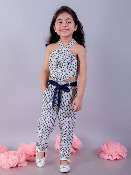 Jaipur Girls Blue Printed Top with Printed Pant Girls Co-ordinate set