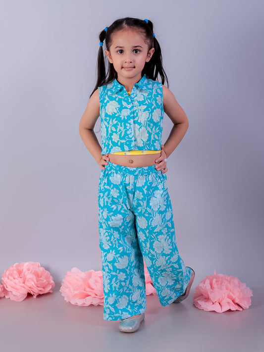 Golden Weaves Blue Crop Top with Palazzo Girls Co-ordinate set