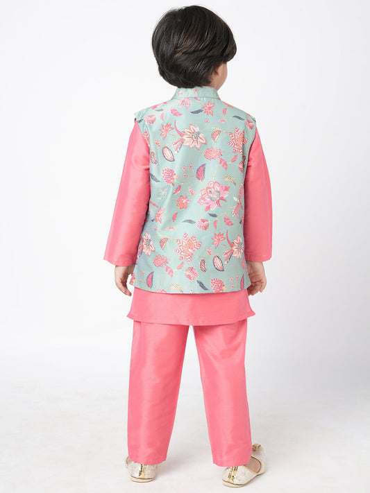 Jaipur Boys Green Kurta and Pyjama with Jacket Ethnic Set