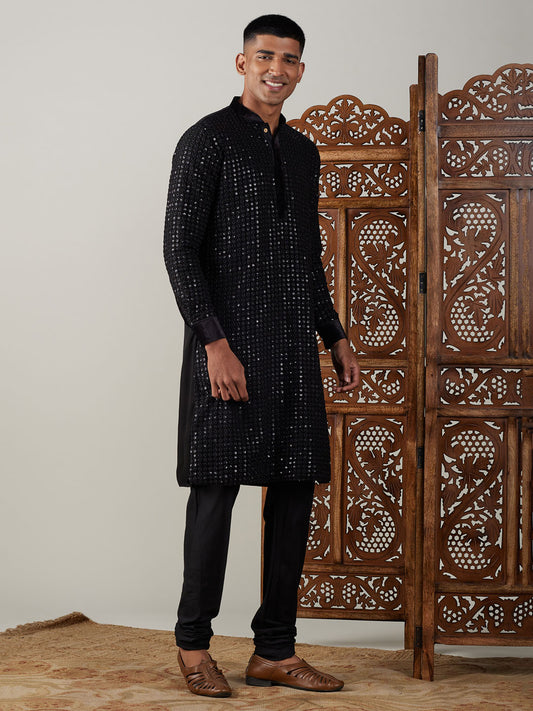 Men's Black Georgette Regular Kurta and Dhoti Set