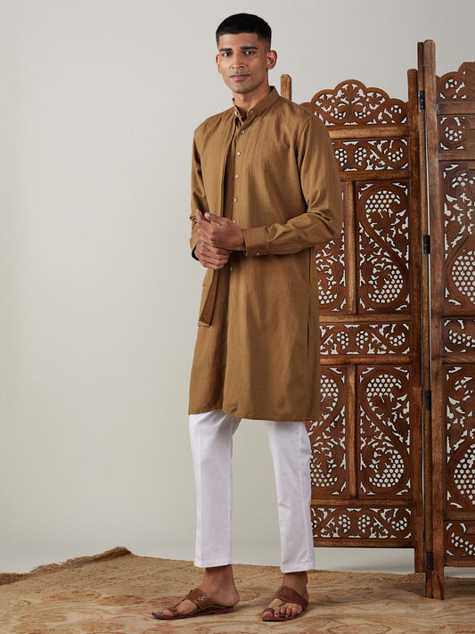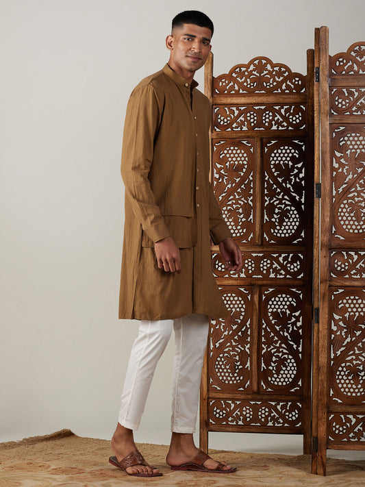 Men's Coffee Cotton Straight Kurta Pyjama Set