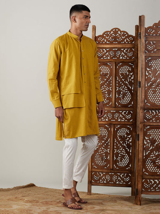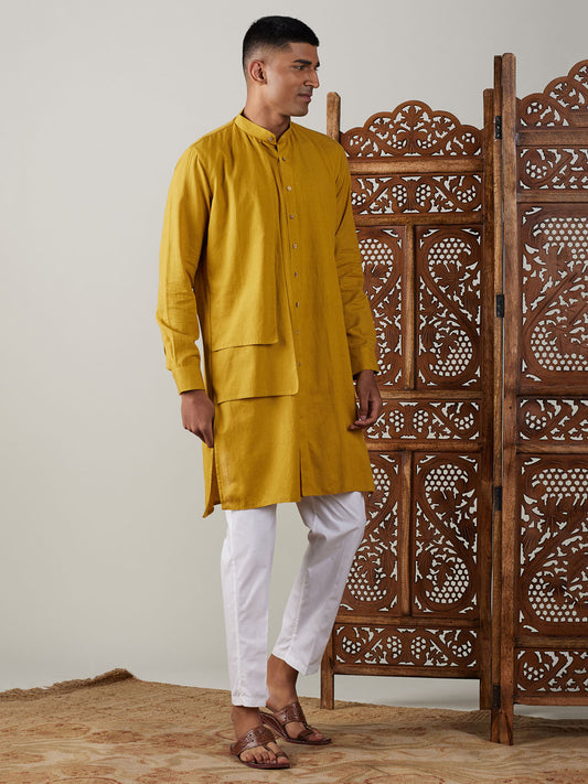 Men's Mustard Cotton Straight Kurta Pyjama Set
