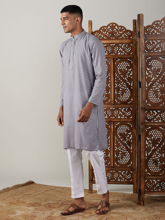 Men's Grey Cotton Straight Kurta Pyjama Set