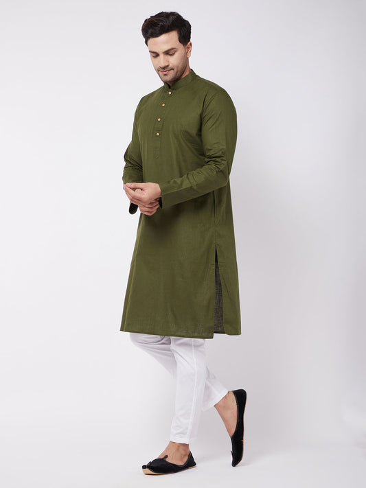 Men's Green Pure Cotton Straight Kurta Pyjama Set