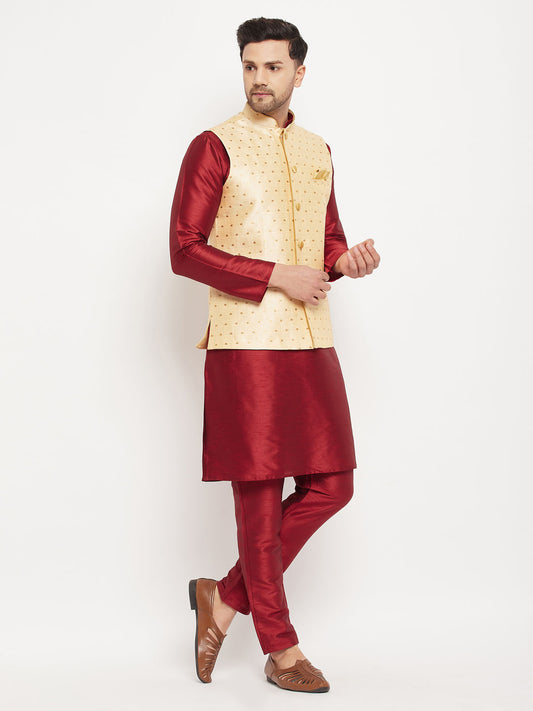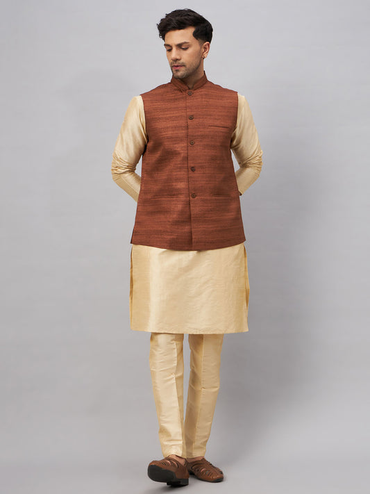 Men's Gold Silk Blend Straight Jacket Kurta and Pyjama Set