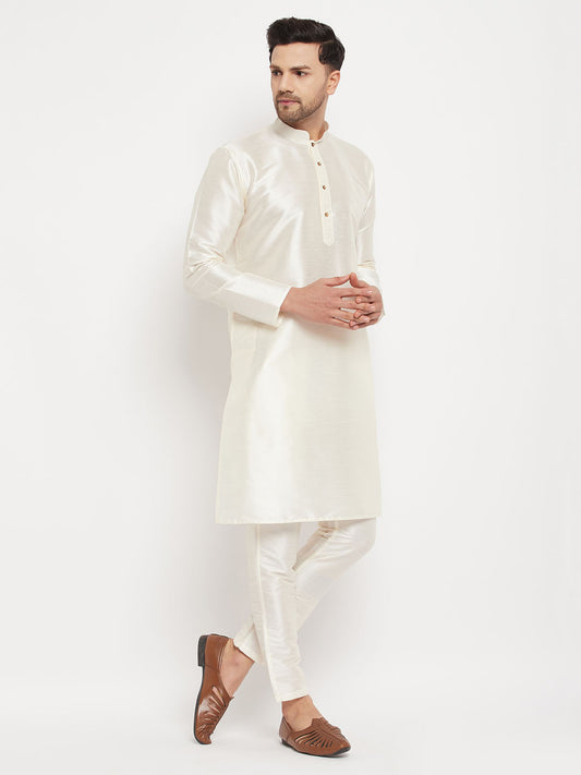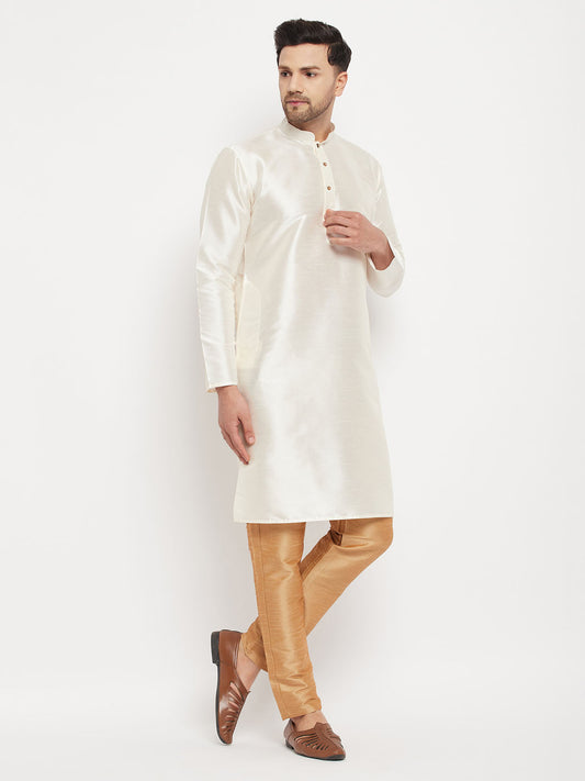 Men's Cream Silk Blend Straight Kurta Pyjama Set
