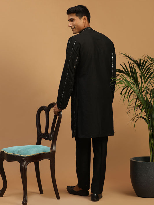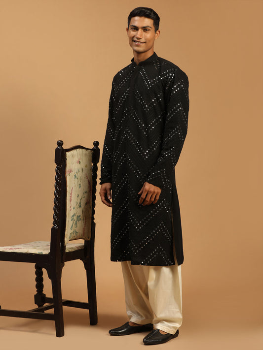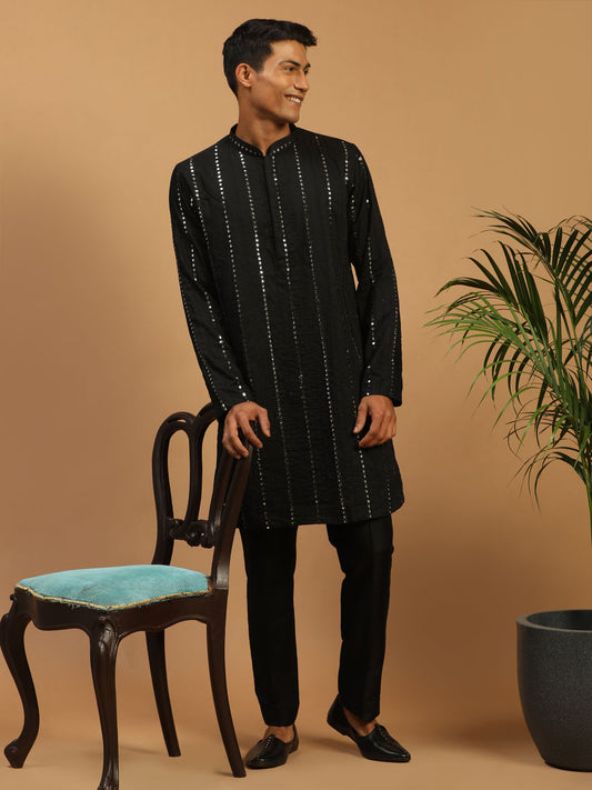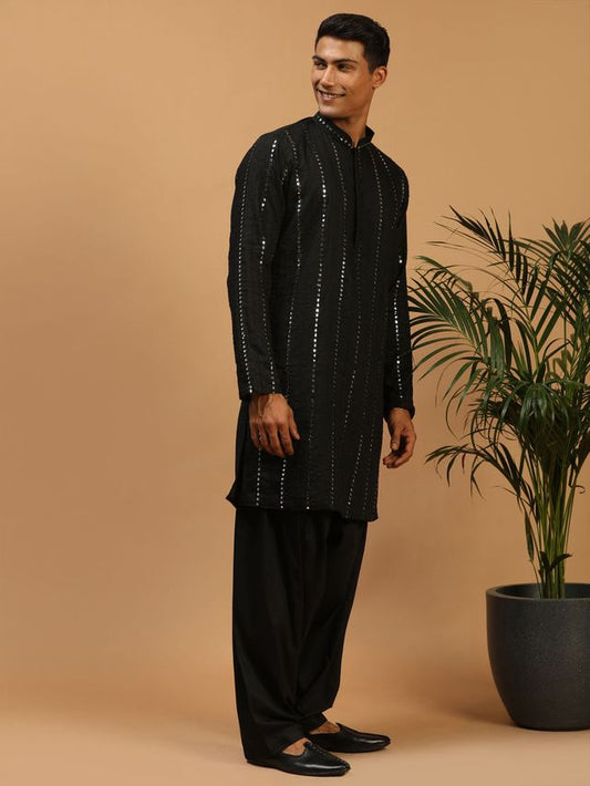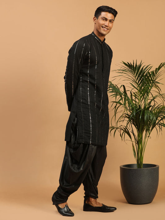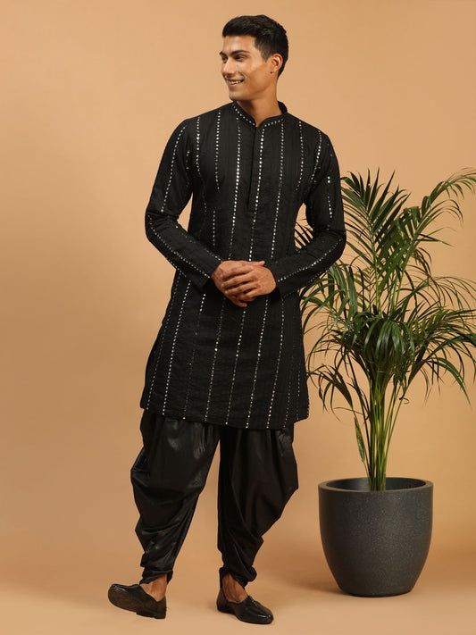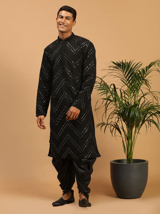 Men's Black Georgette Straight Kurta and Dhoti Set