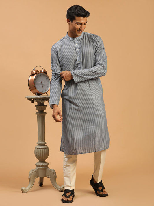 Men's Grey Cotton Blend Straight Kurta Pyjama Set