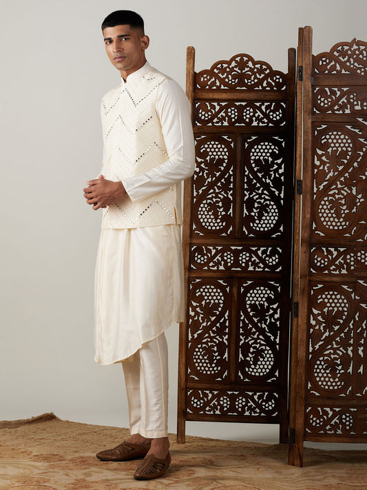 Men's Cream Viscose Straight Jacket Kurta and Pyjama Set