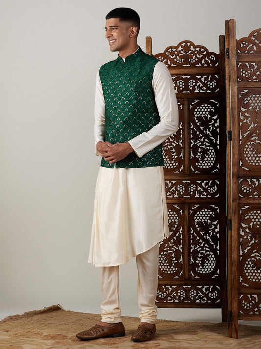 Men's Green Silk Blend Straight Jacket Kurta and Pyjama Set