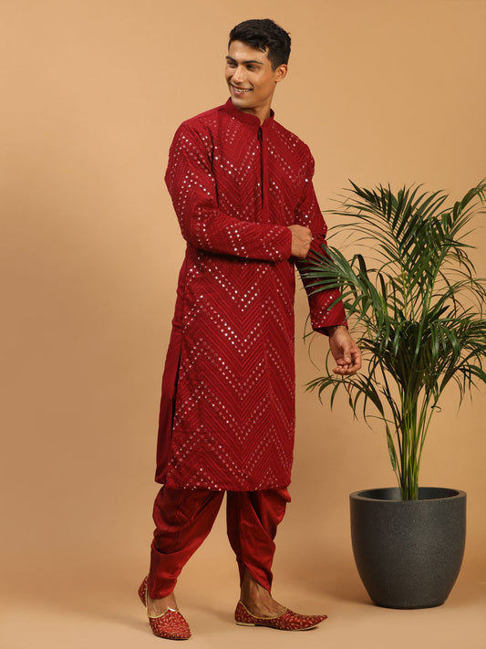 Men's Maroon Georgette Straight Kurta and Dhoti Set