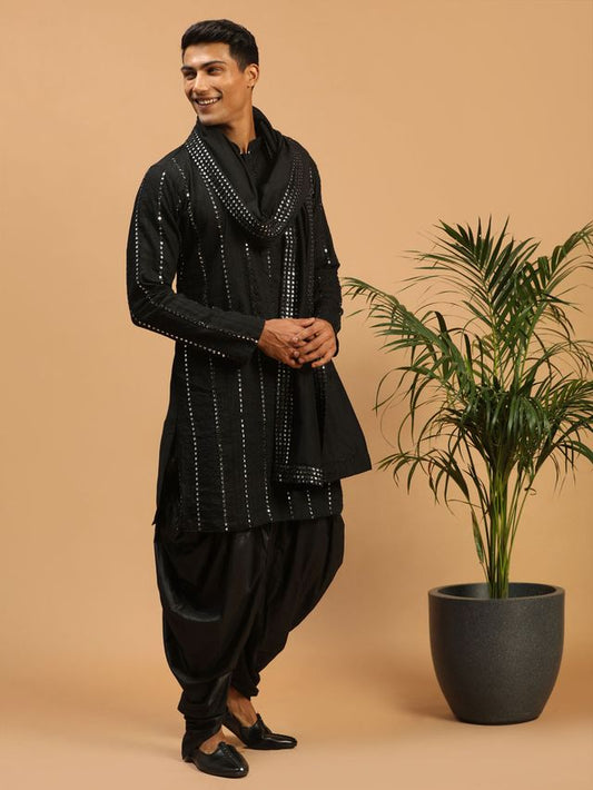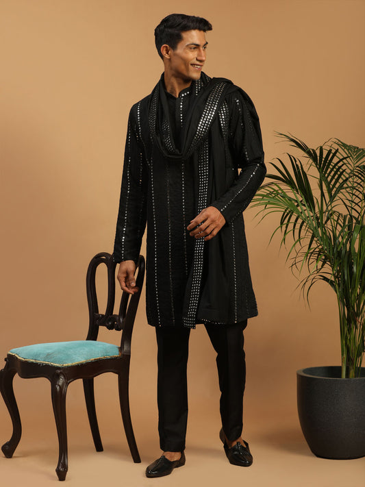 Men's Black Viscose Straight Kurta Pyjama & Dupatta Set