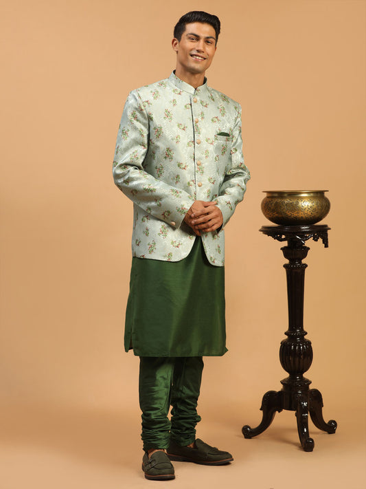Men's Green Viscose Blend Straight Jacket Kurta and Pyjama Set