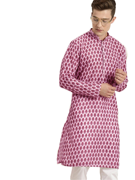 Men's Pink Viscose Straight Ethnic Shirt