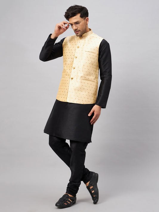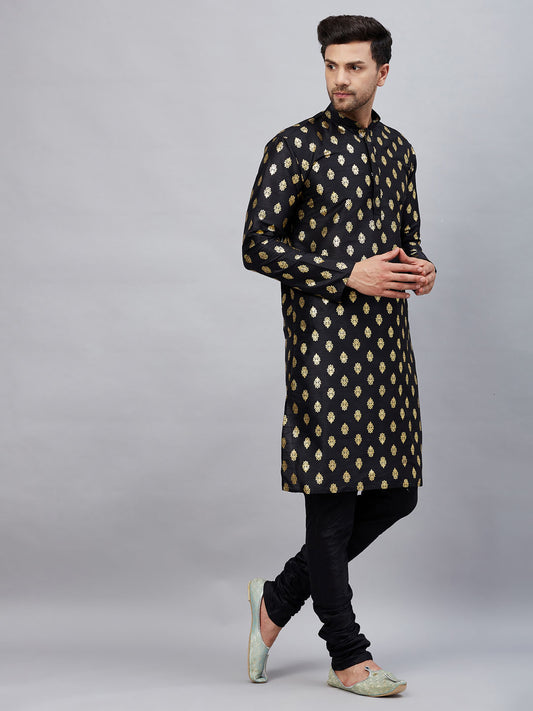 Men's Black Silk Blend Straight Jacket Kurta and Pyjama Set