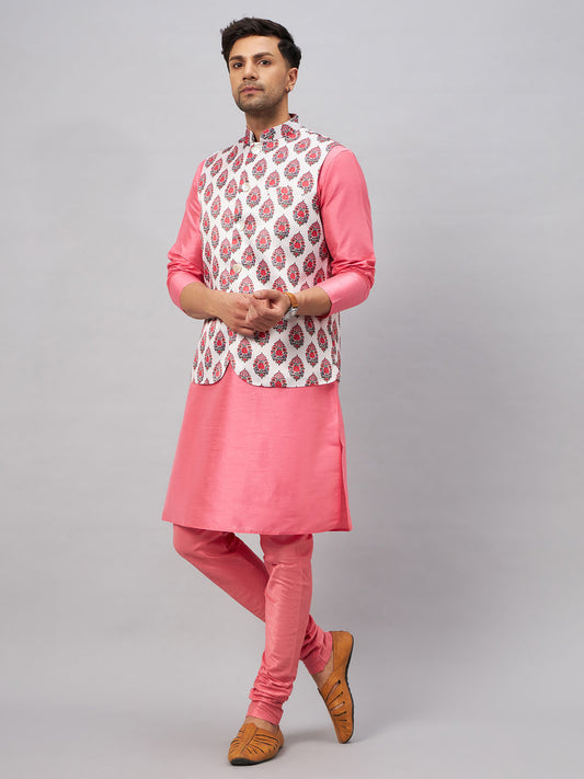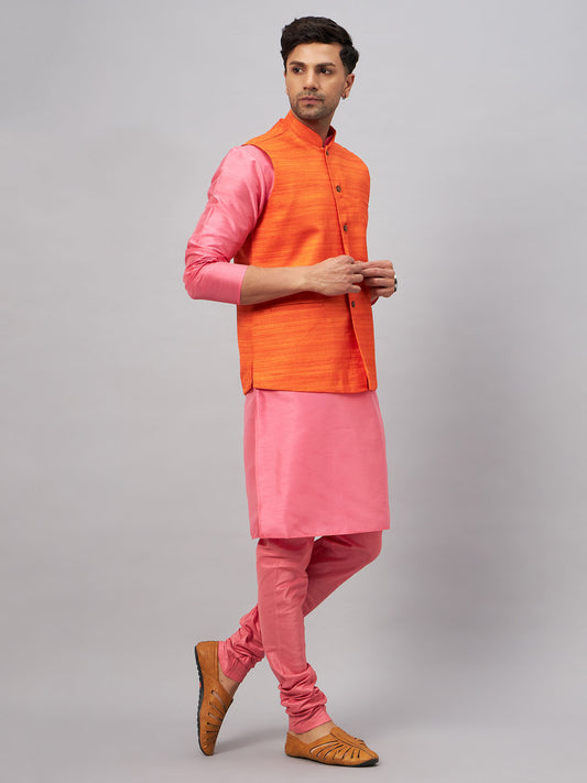 Men's Pink Silk Blend Straight Jacket Kurta and Pyjama Set