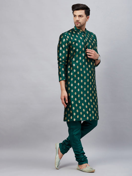 Men's Green Dupion Silk Straight Kurta Pyjama Set