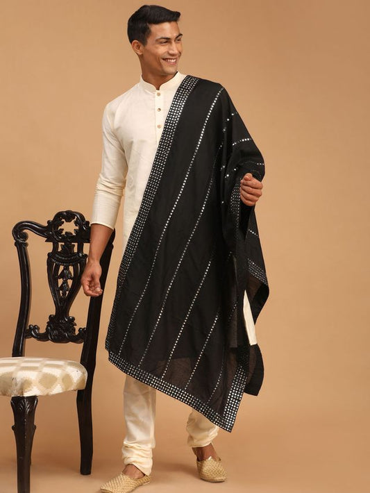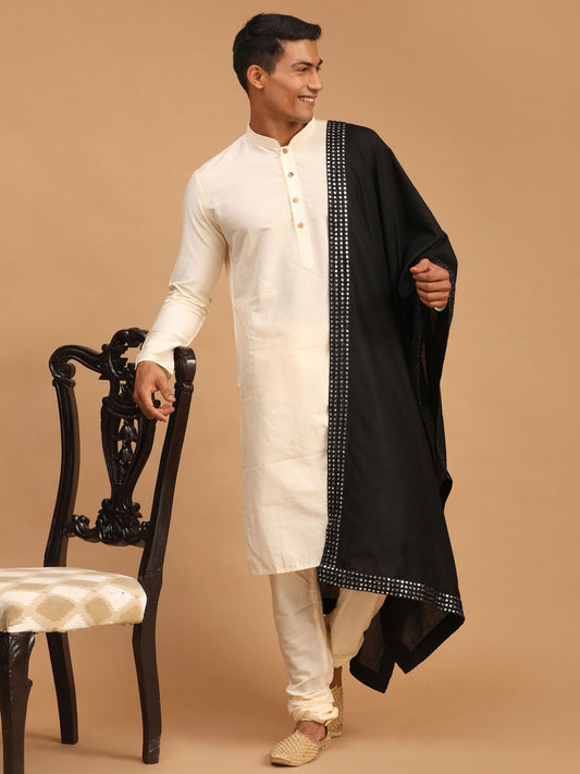 Men's Cream Viscose Straight Kurta Pyjama & Dupatta Set