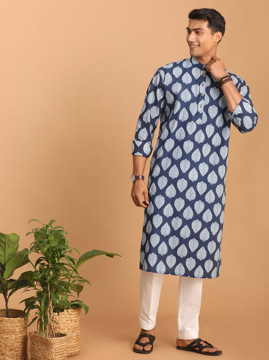 Men's Indigo Blue Cotton Straight Kurta Pyjama Set