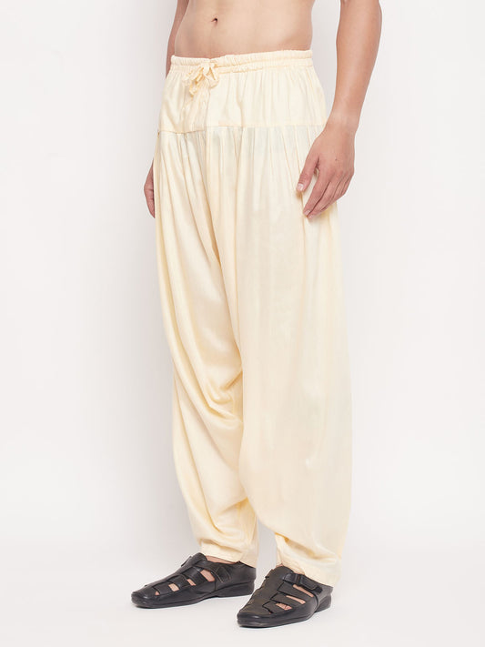 Men's Cream Viscose Straight Kurta Pyjama Set