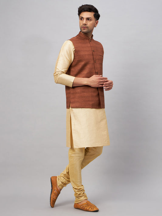 Men's Gold Silk Blend Straight Jacket Kurta and Pyjama Set