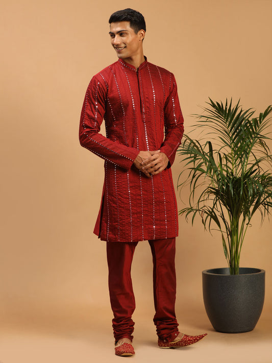 Men's Maroon Viscose Straight Kurta Pyjama Set