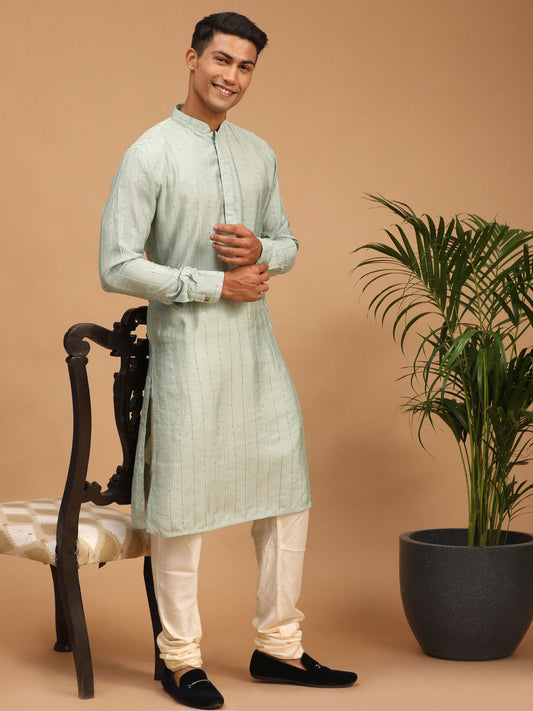 Men's Green Cotton Blend Straight Kurta Pyjama Set