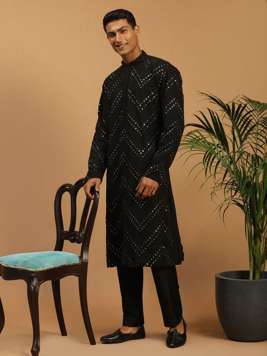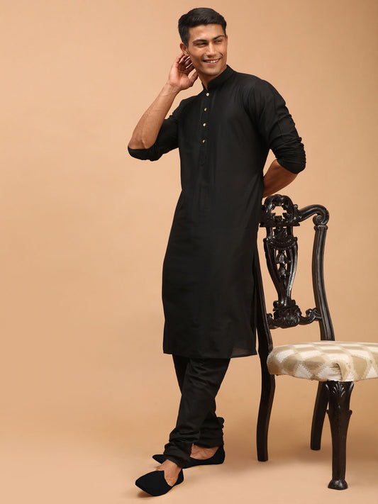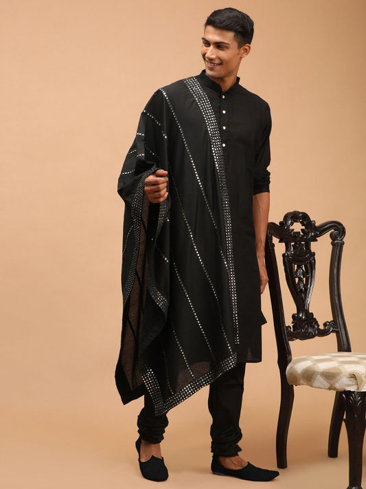 Men's Black Viscose Straight Kurta Pyjama & Dupatta Set