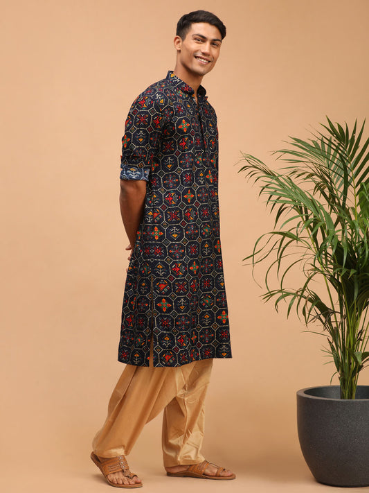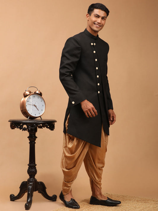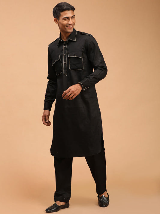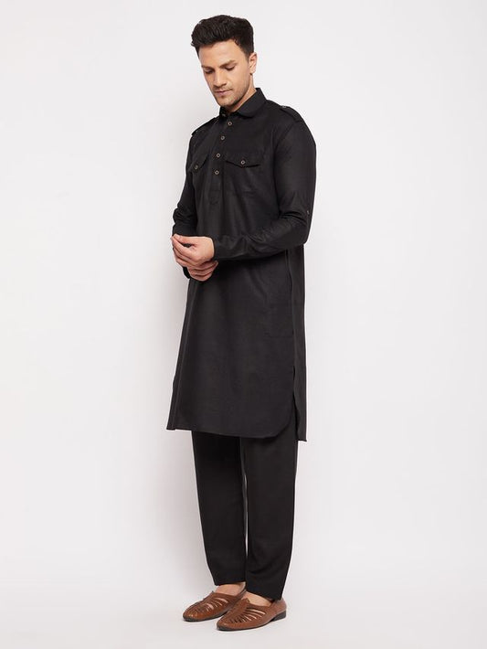 Men's Black Cotton Blend Pathani Pathani Kurta Set
