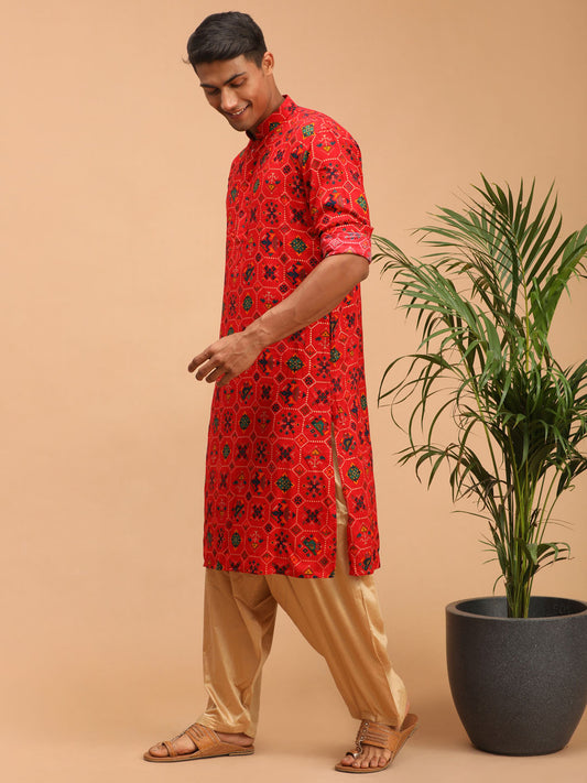 Men's Red Cotton Blend Pathani Kurta and Patiala Set