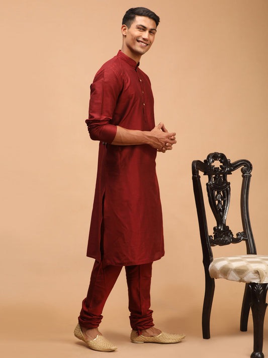 Men's Maroon Viscose Straight Kurta Pyjama Set
