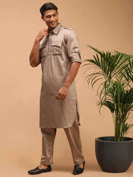 Men's Chiku Brown Cotton Blend Pathani Pathani Kurta Set
