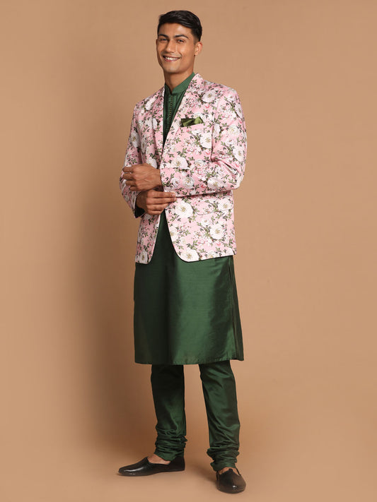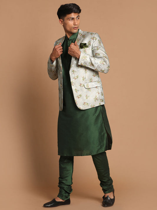 Men's Green Viscose Blend Straight Jacket Kurta and Pyjama Set