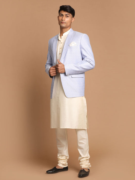 Men's Aqua Cotton Blend Straight Jacket Kurta and Pyjama Set