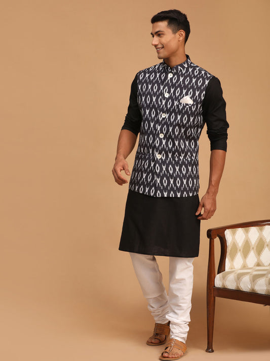 Men's Black Cotton Blend Straight Jacket Kurta and Pyjama Set
