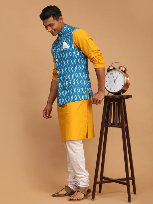 Men's Mustard Cotton Blend Straight Jacket Kurta and Pyjama Set