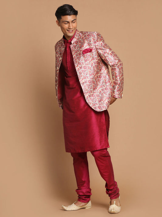 Men's Pink Viscose Blend Straight Jacket Kurta and Pyjama Set
