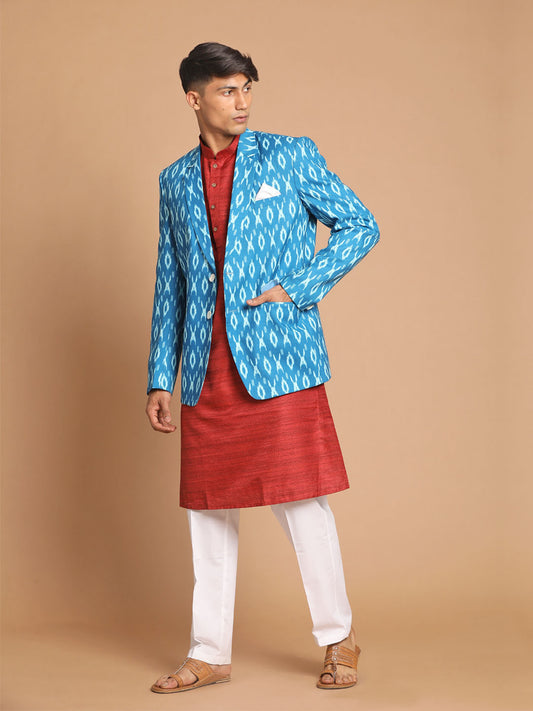 Men's Maroon Cotton Blend Straight Jacket Kurta and Pyjama Set