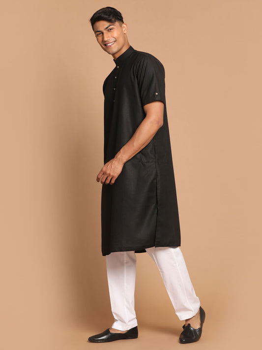 Men's Black Cotton Blend Straight Kurta Pyjama Set