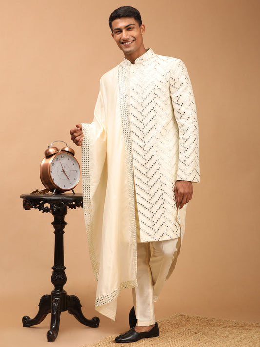 Men's Cream Silk Blend Straight Sherwani Set